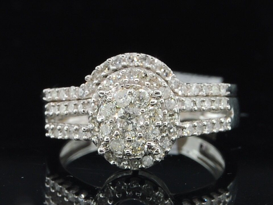 - 10K White Gold Diamond Bridal Set 0.78 CT Engagement Ring Curved Wedding Band