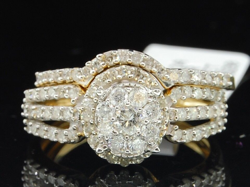 (3.9 grams of 10K Yellow Gold; 0.88 total carats of white diamonds; 5mm wide; SI2 - I1 Clarity & H - I color; Women's wedding ring set)