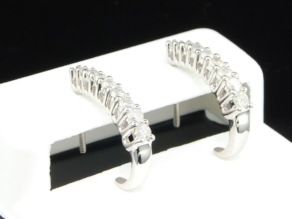 - Ladies 10K White Gold 0.53 Ct. Designer Diamond Hoops Huggies Earrings Studs