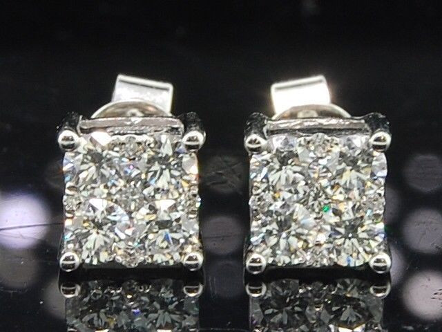 - Ladies 18K White Gold Designer Round Cut Diamond Studs Earrings 0.68 Ct.