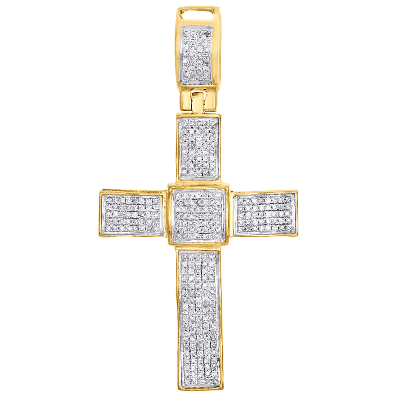 (3.4 gr. of 10K Yellow Gold | Total Carat Weight: 0.50 ct. t.w. of White Diamonds | Length: 1.80" (including bail) | Width: 0.95" | Clarity: I1 - I2 | Color: H - I | Men's Real Genuine Diamond Domed Cross Square Center Fancy Statement Pendant Pave Charm)