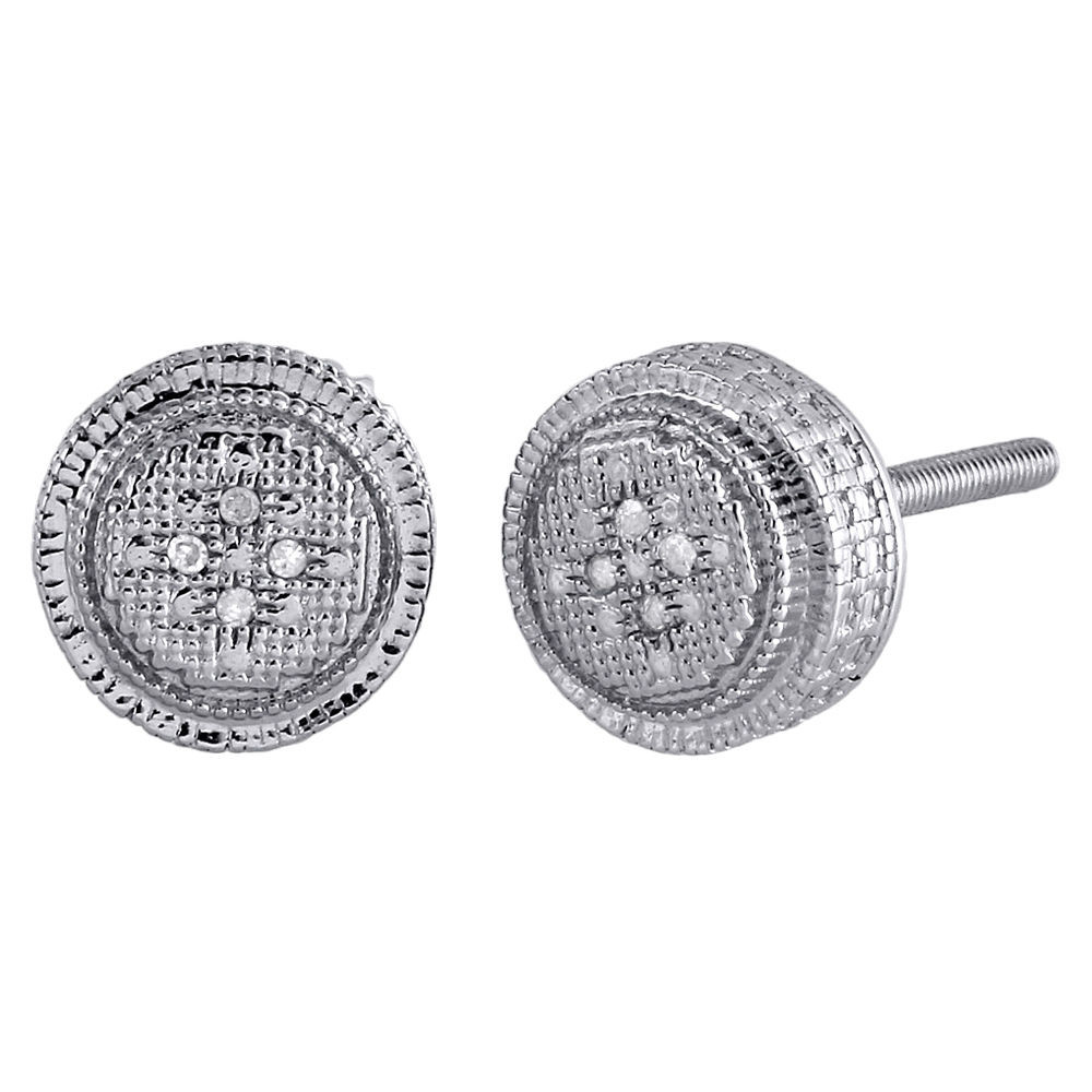 Stunning pair of studs added to our Rodeo Jewelers collection. These earrings are expertly crafted in .925 sterling silver and showcases real diamonds in a 3D circle look. Radiant with 0.02 ct. total weight of diamonds, these studs are high polished for a bright shine. These particular studs consist of genuine rounds diamonds in a prong setting. Screw-backs for secure wear, these earrings will make a great gift for any occasion. 3D circle shaped give these earring depth and makes a bold fashion statement. Medium size stud for men's, these earrings are 8.05mm in width & 4.30mm thickness.