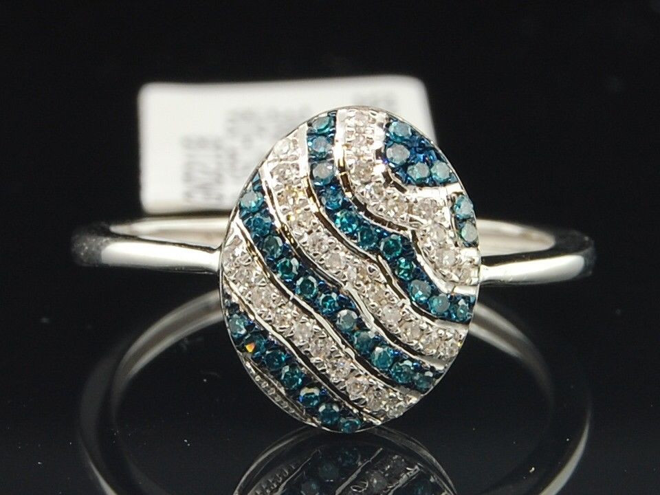 10k White Gold Round Cut Blue Diamond Oval Design Fashion Cocktail Ring 0.15 Ct.