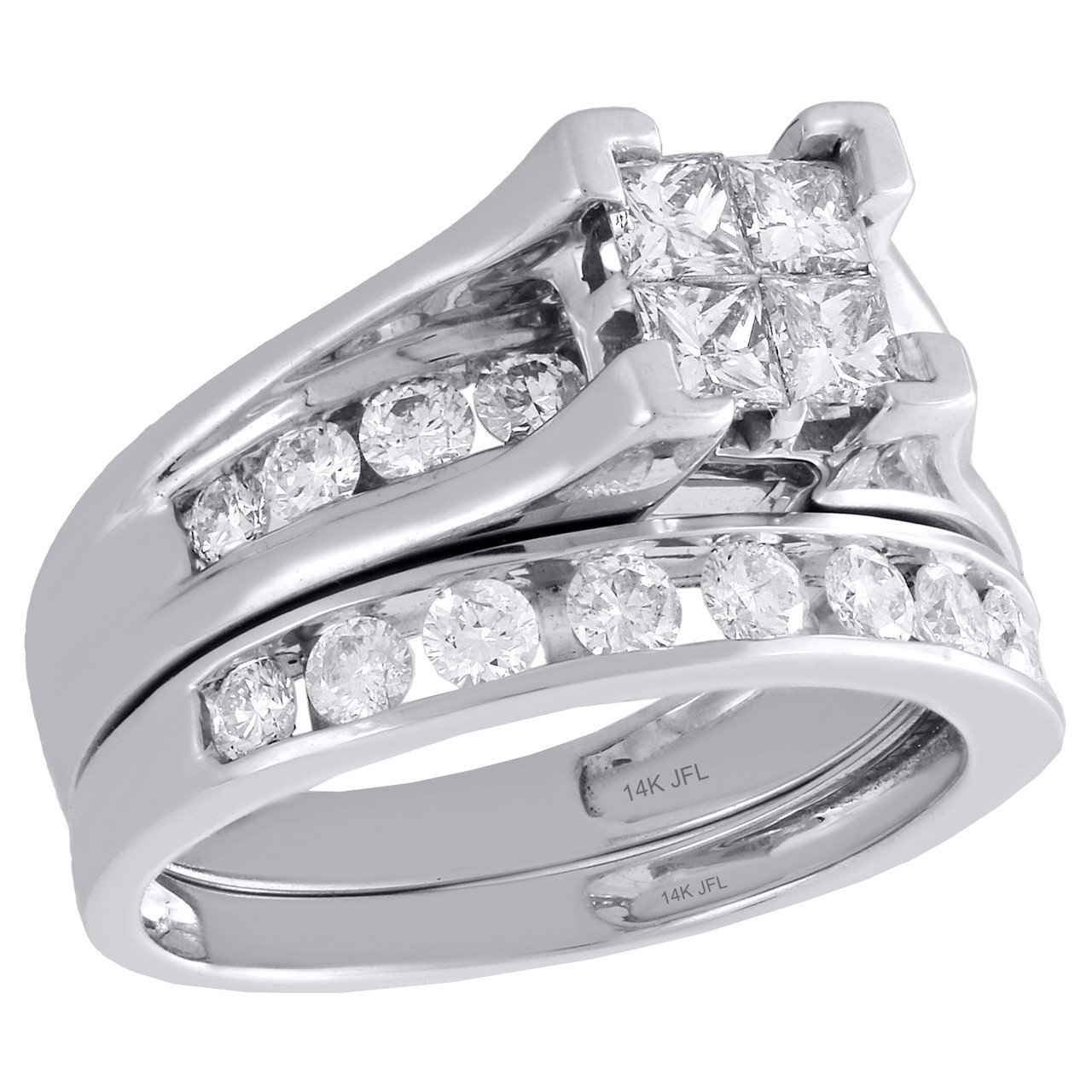14K White Gold Princess Diamond Bridal Set Engagement + Wedding Rings 1.50 Ct.