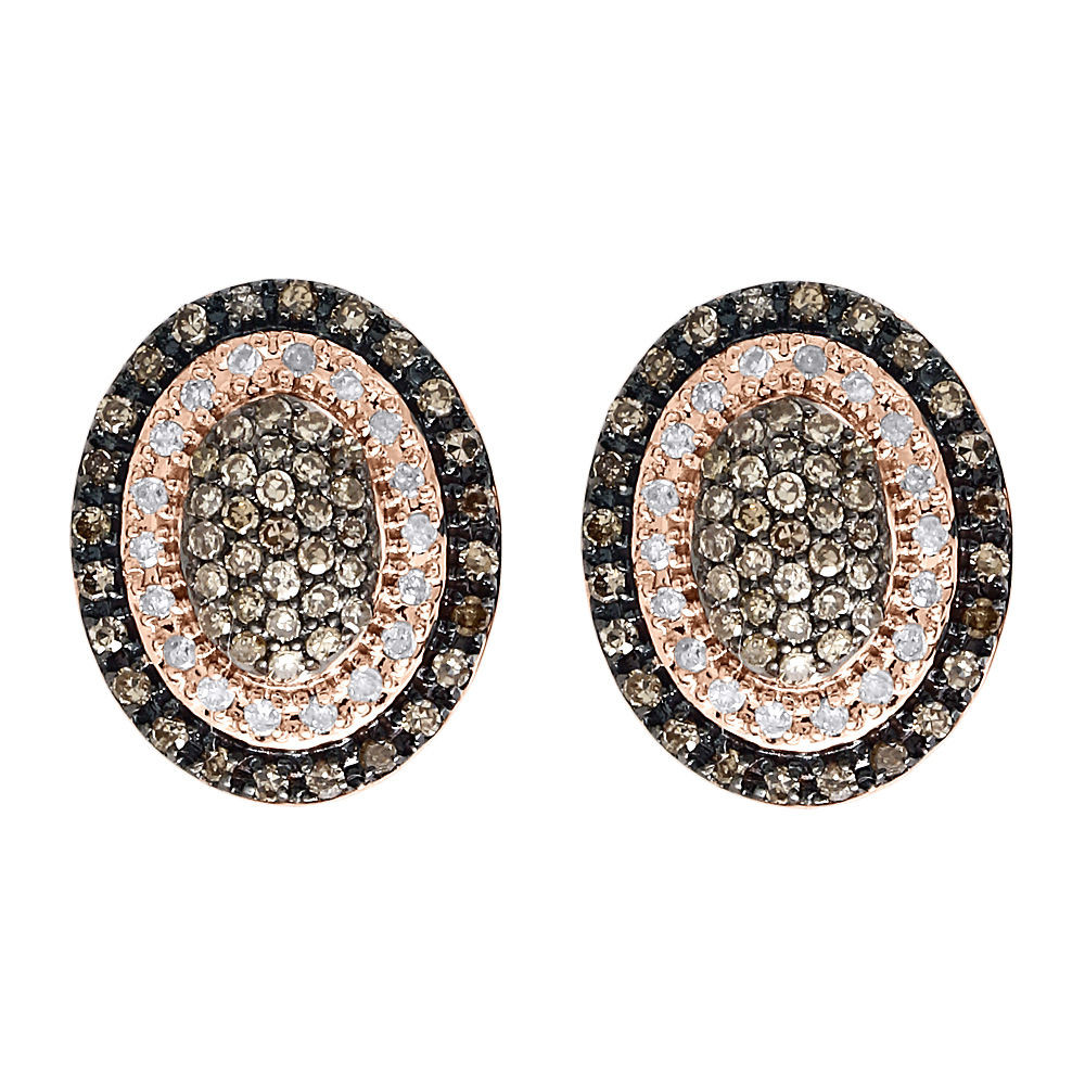 - Brown Diamond Earrings Ladies 10K Rose Gold Round Pave Oval Studs 0.52 Tcw.