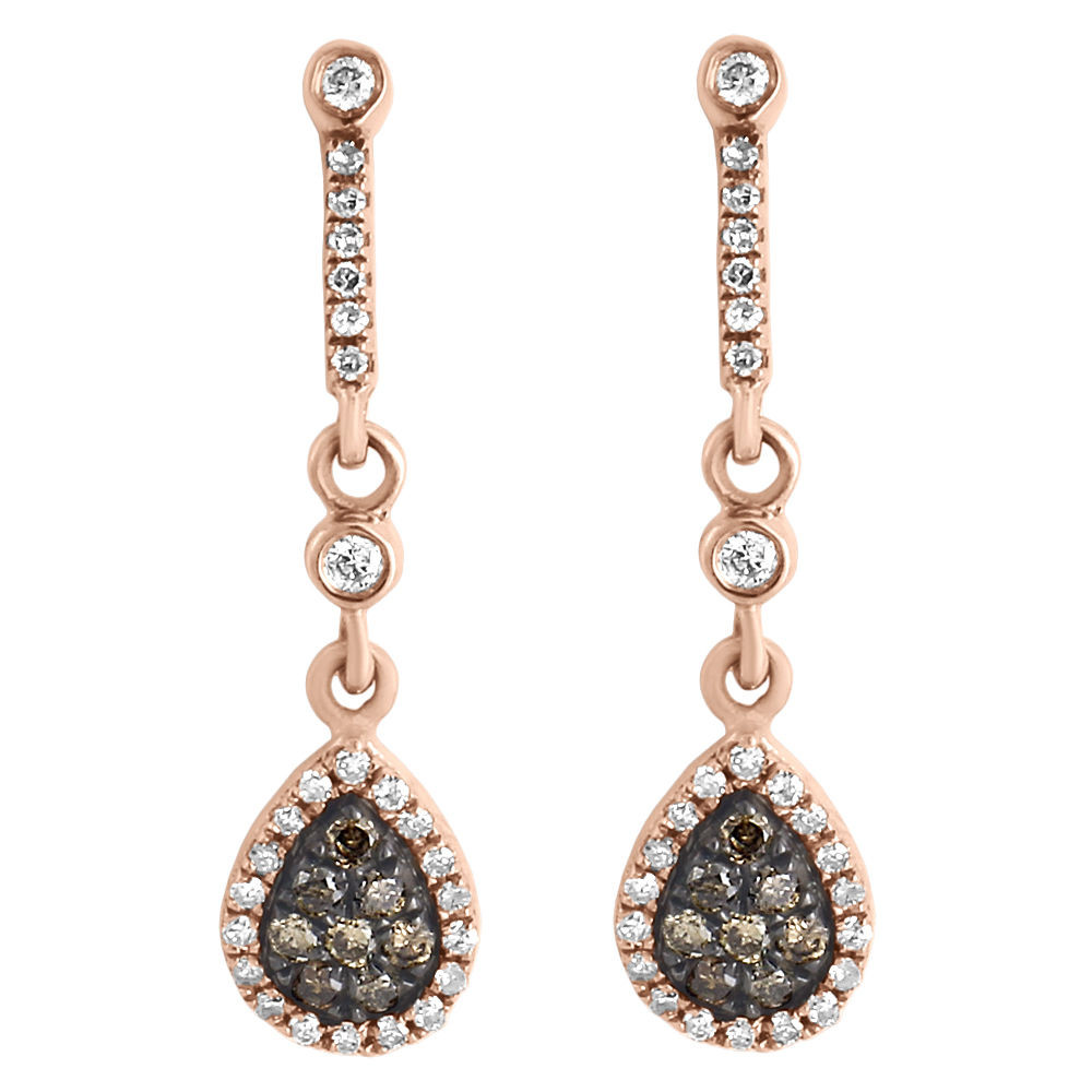 Brown Diamond Earrings Ladies Rose Gold Round Pave Teardrop Danglers 0.50 Tcw.