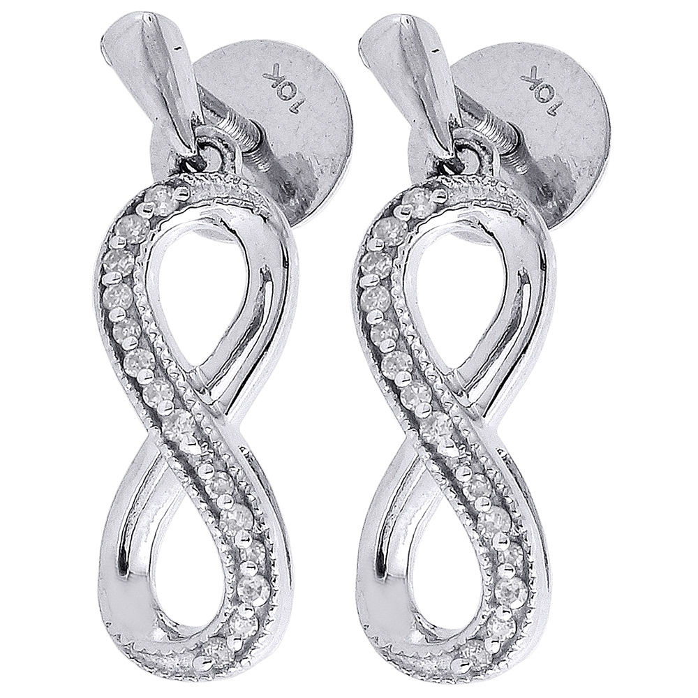 - Diamond Infinity Earrings Ladies 10K White Gold Round Screw Danglers 0.10 Tcw.