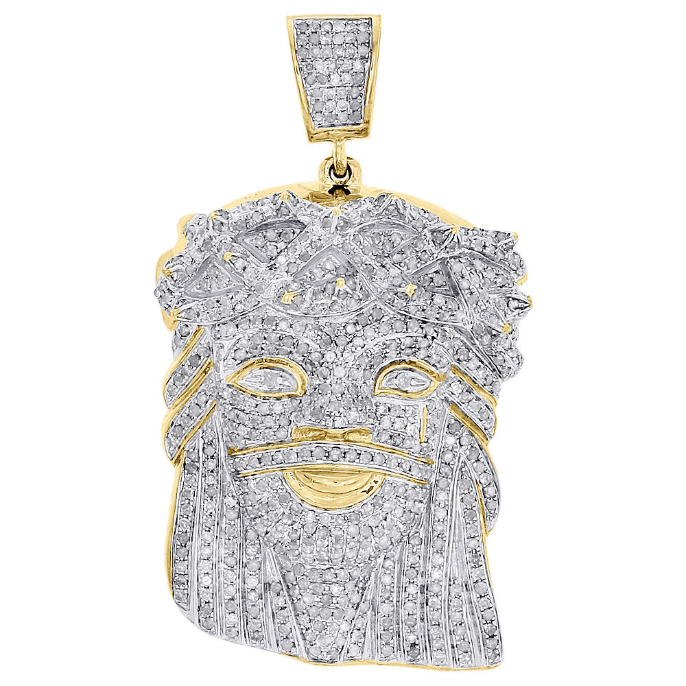 - 10K Yellow Gold Real Diamond Jesus Piece Face Pendant 2" Mens Pave Charm 2.55 CT