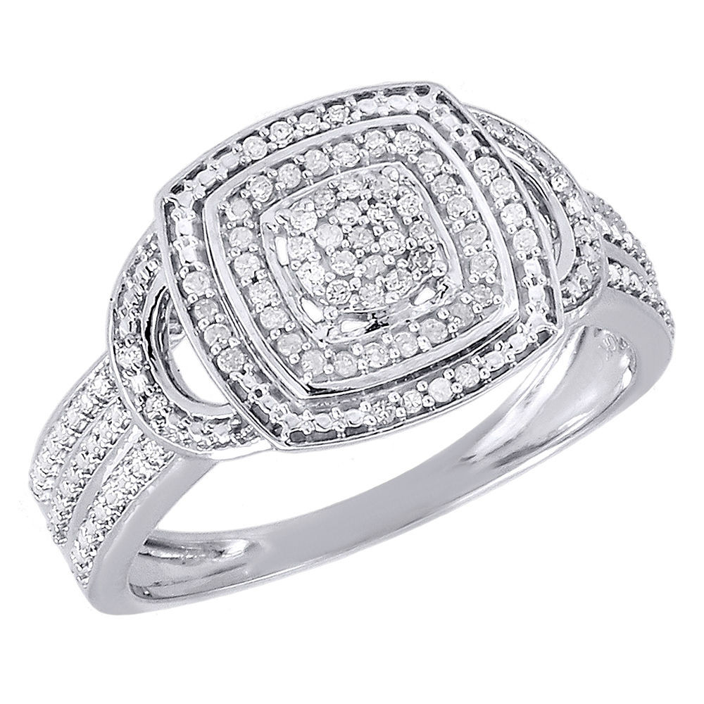 10K White Gold Diamond Ladies Square Promise Fashion Band Right Hand Ring .15 Ct