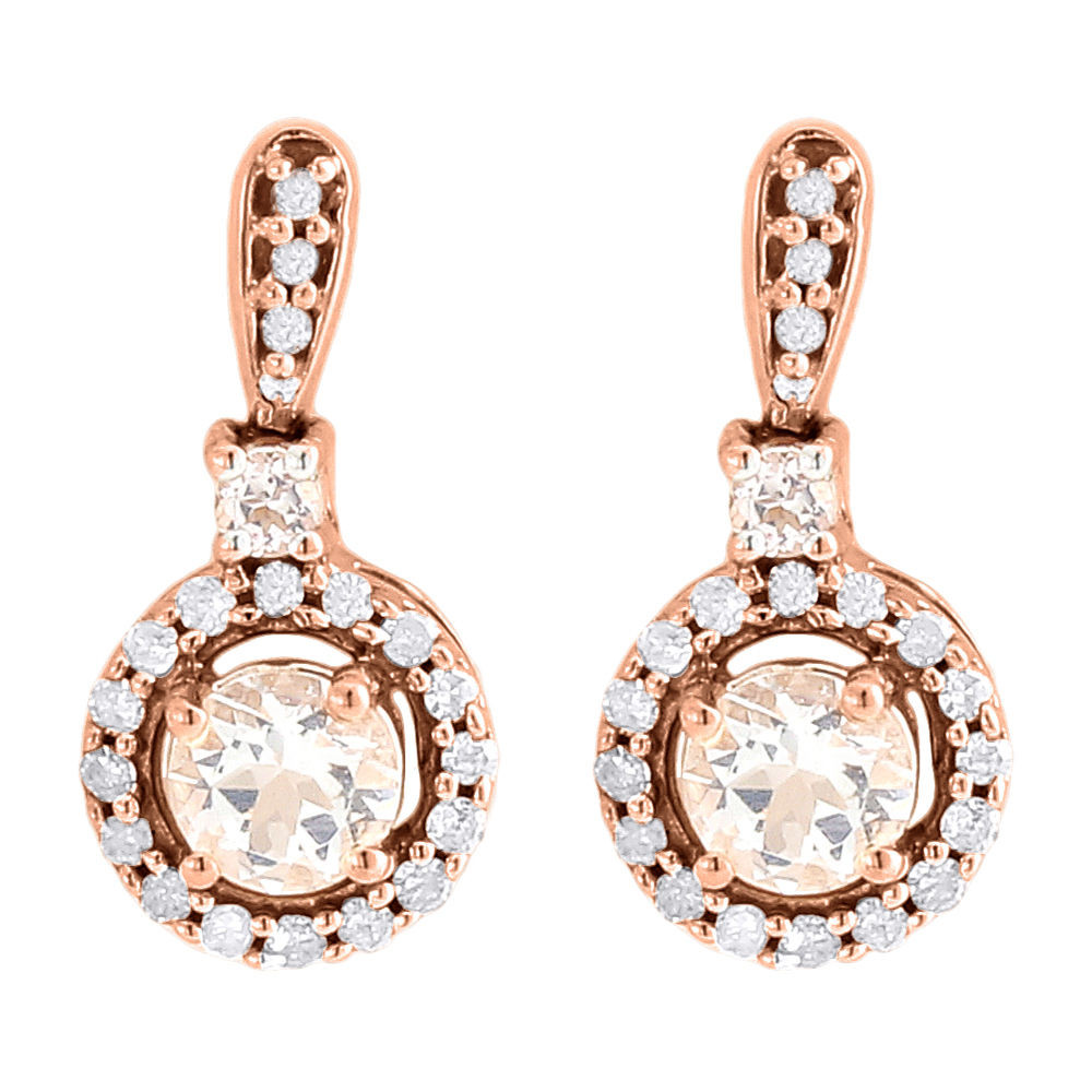 - Diamond & Morganite Earrings 10k Rose Gold Round Ladies Danglers 1.09 Tcw