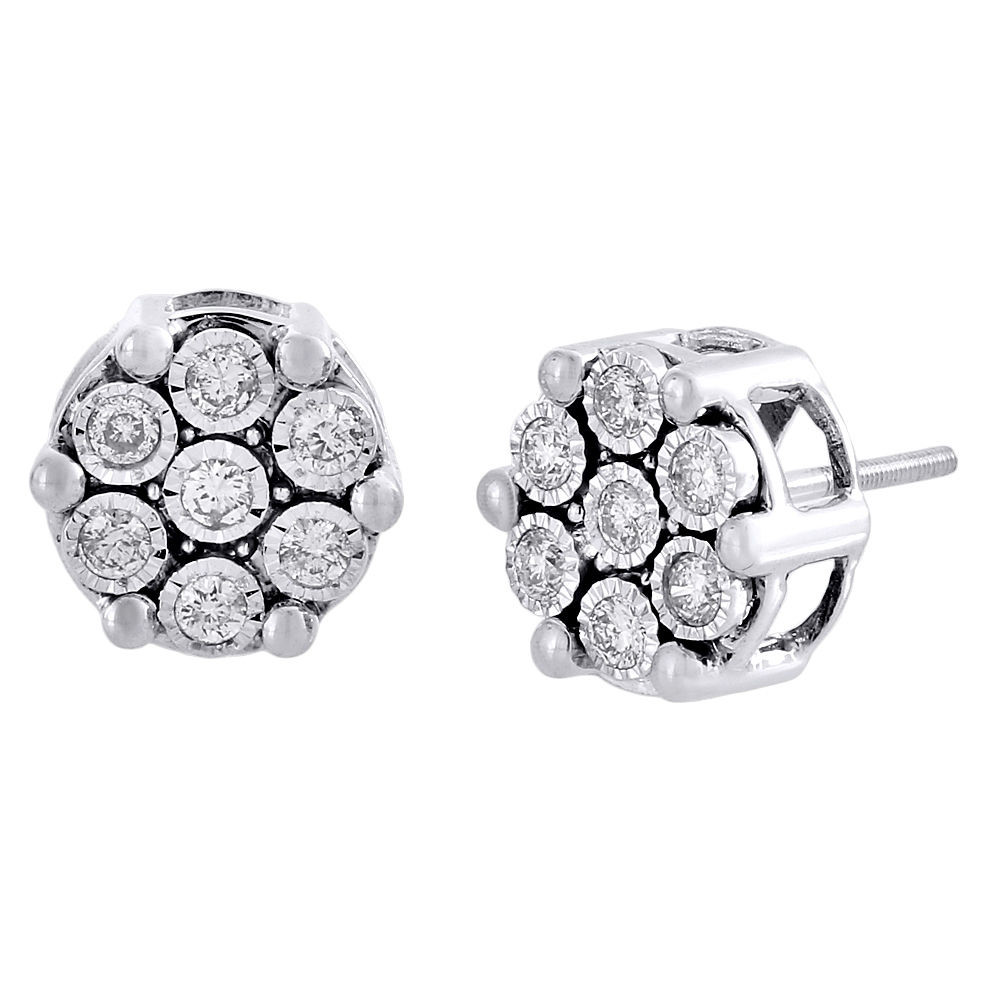 - Diamond Flower Earrings 10K White Gold Round Cut Fanook Design Studs 0.60 Tcw.