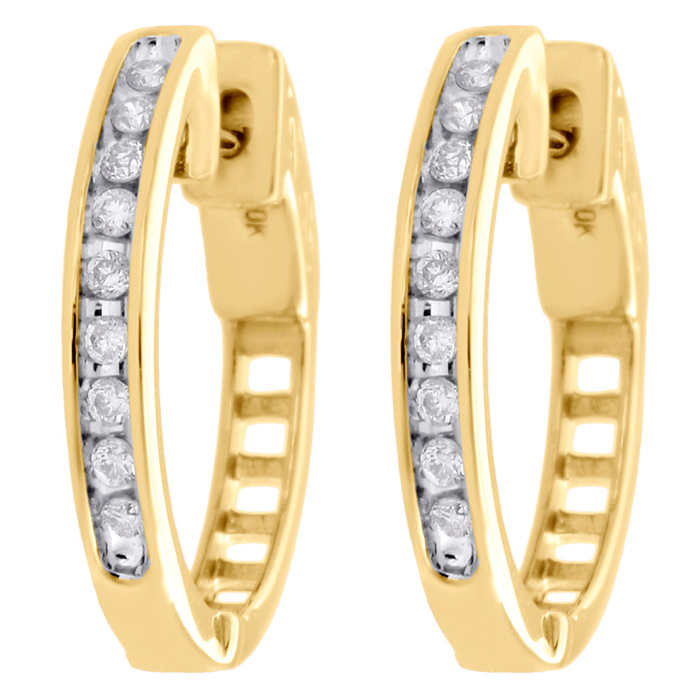 - 10k Yellow Gold Genuine Diamond One Row Channel Set Huggie Hoop Earrings 1/4 CT.