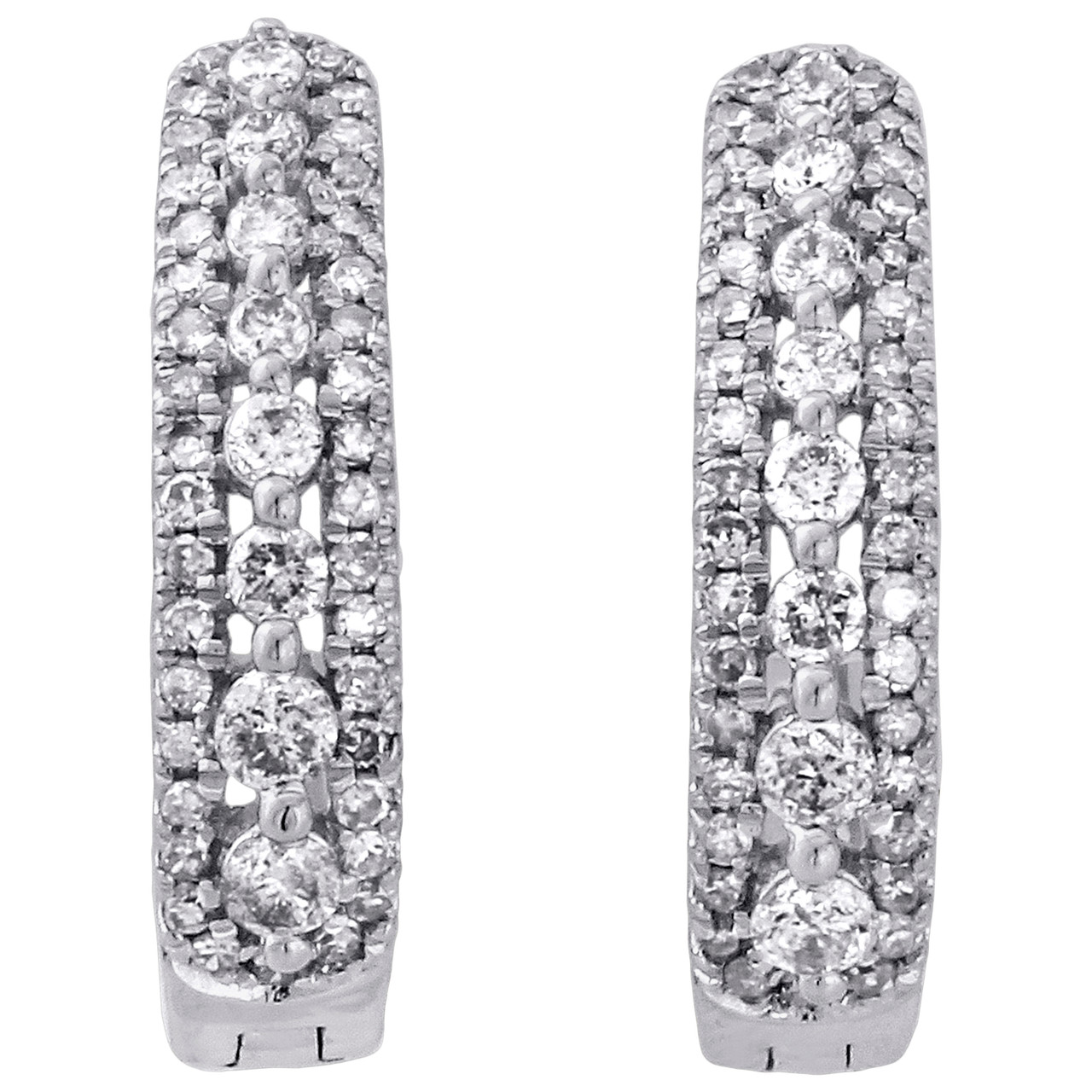 10K White Gold Diamond Tiered Hoop / Huggie Hinged Earrings Snap Closure 0.50 CT