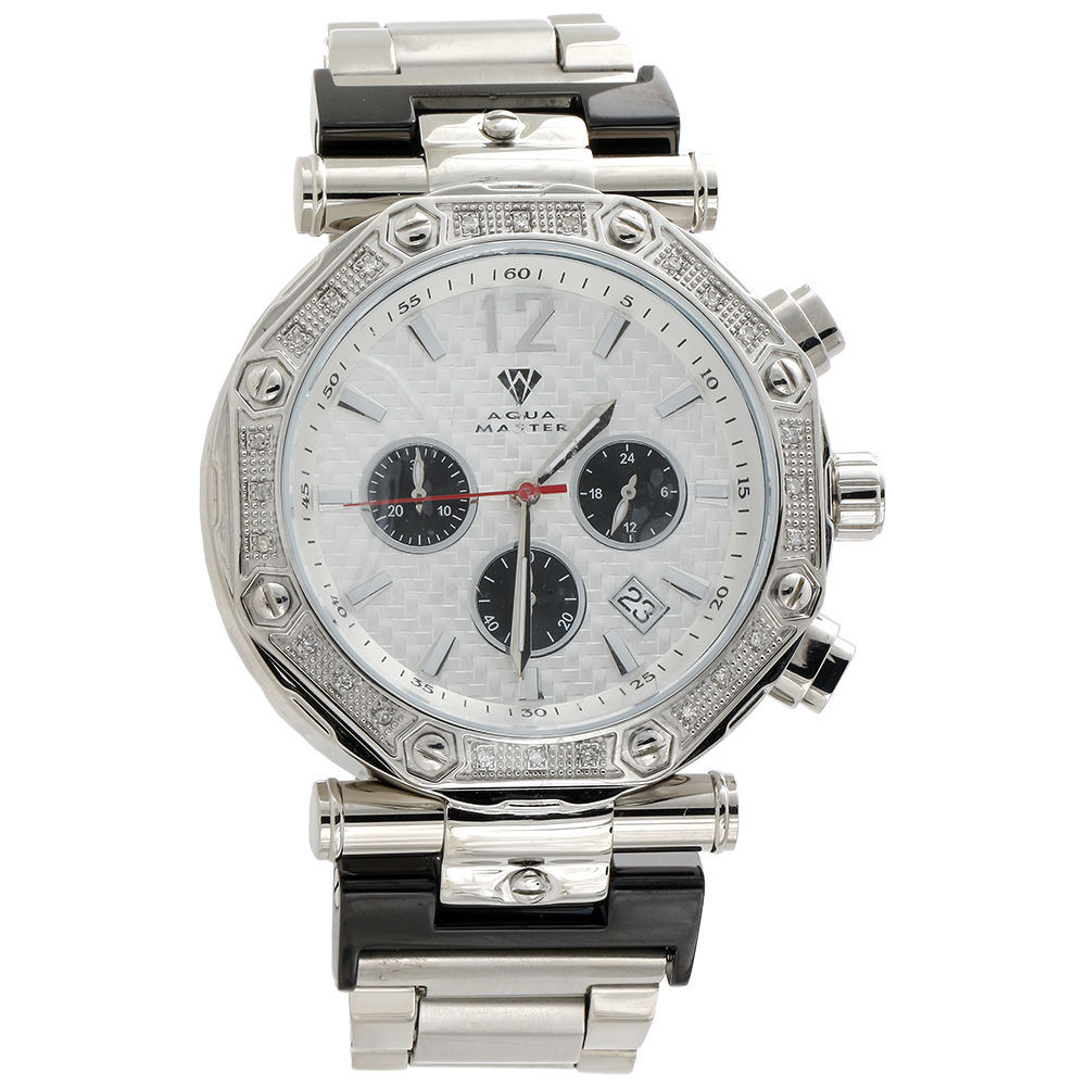 - Mens Aqua Master Jojino Diamond Watch 47mm White Stainless Steel W#147 0.25 Ct.