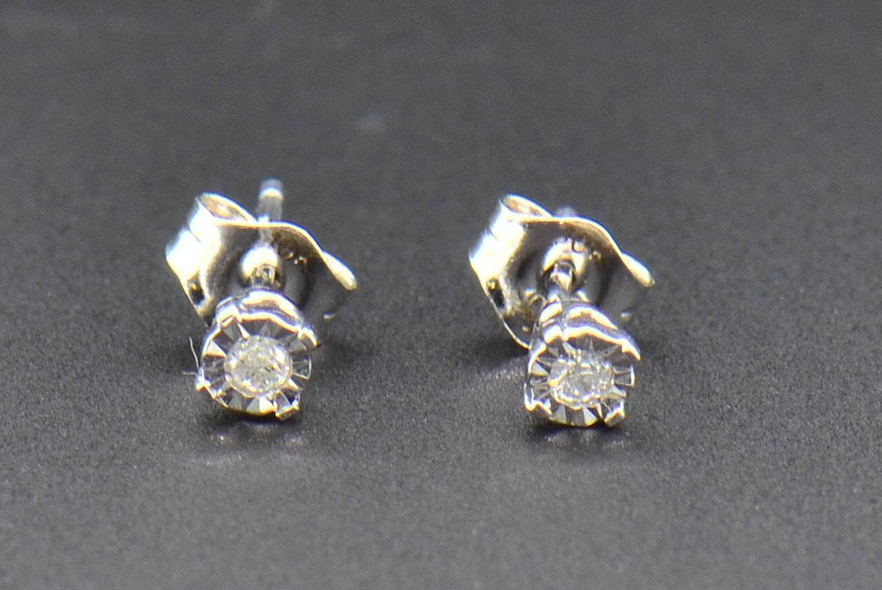 - Round Cut Diamond Studs 10K White Gold Fanook Setting Earrings 0.04 Ct