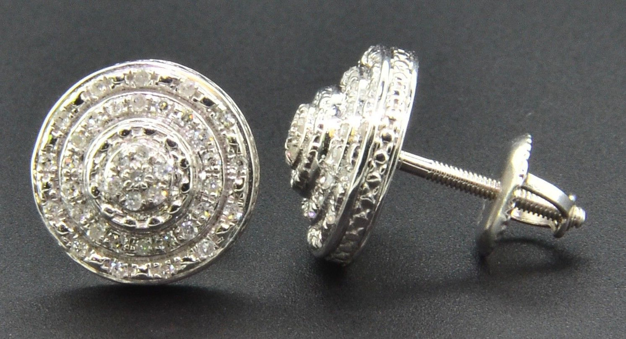 - Diamond 3D Earrings .925 Sterling Silver White Finish Pave Circle Studs 0.25 Ct.