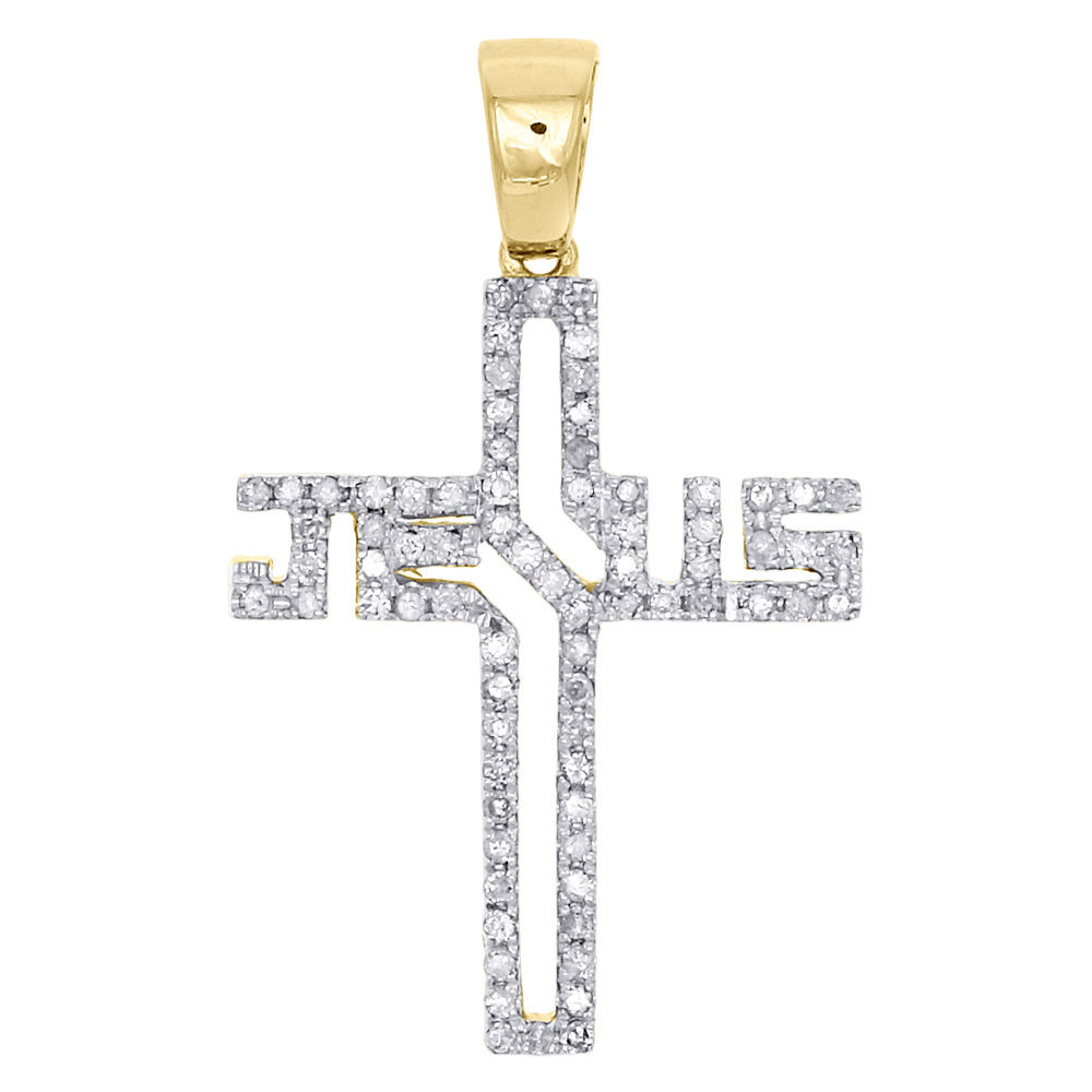 (3.2 grams of 10K Yellow Gold | 0.45 ct. total weight of white diamonds | 1.30" long & 0.80" wide | I1 - I2 Clarity & H - I Color | Diamond Jesus Cross Pendant Charm)