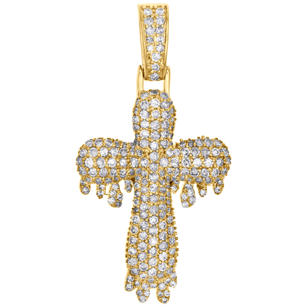 (5.5 gr. of 10K Yellow Gold | Total Carat Weight: 1.70 ct. t.w. of White Diamonds | Length: 1.70" (including bail) | Width: 0.90" | Clarity: I1 - I2 | Color: H - I | Men's Genuine Round Cut Diamond Domed 3D Drip Cross Pendant Pave Charm)