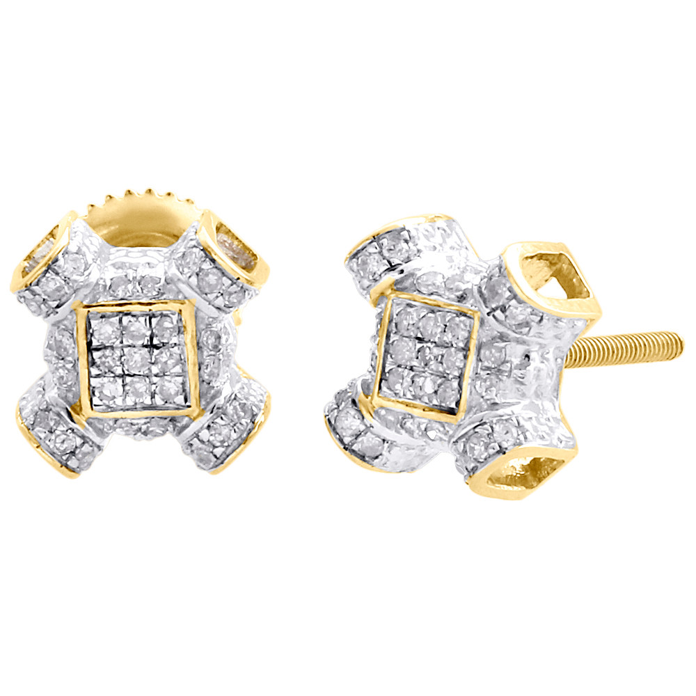 Stunning pair of studs added to our Rodeo Jewelers collection. These earrings are expertly crafted in 10K yellow gold and showcases genuine diamonds. Radiant with 1/4 ct. t.w. of diamonds, these studs are high polished for a bright shine. These particular studs consist of real brilliant round diamonds in pave setting, making the overall appearance larger and lustrous. Screw-backs for secure wear, these earrings will make a great gift for any occasion. Criss-Cross style makes a bold fashion statement. Medium size stud for men or women, these earrings are 7.75mm in width & 3.50mm thick