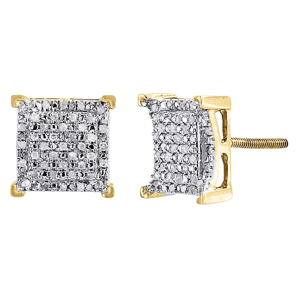 - Diamond Square Earrings 10K Yellow Gold Round Cut Pave Design Studs 0.25 Tcw.