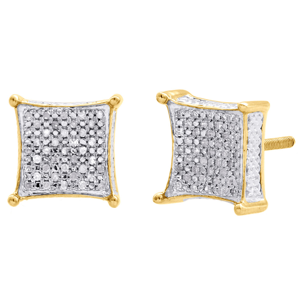 (2.70 gr. of .925 Sterling Silver (yellow finish) | 0.25 ct. t.w. of White Diamonds | Width: 10.50mm | Thickness: 3mm | Clarity: I1 - I2 | Color: H - I | Men's Genuine Round Diamond Kite Shape 4-Prong 3D Pave Stud / Earrings)
