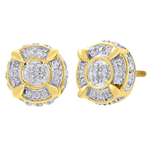- 10K Yellow Gold Round Cut Diamond 3D Circle Studs 9mm Pave Earrings 0.25 Ct.