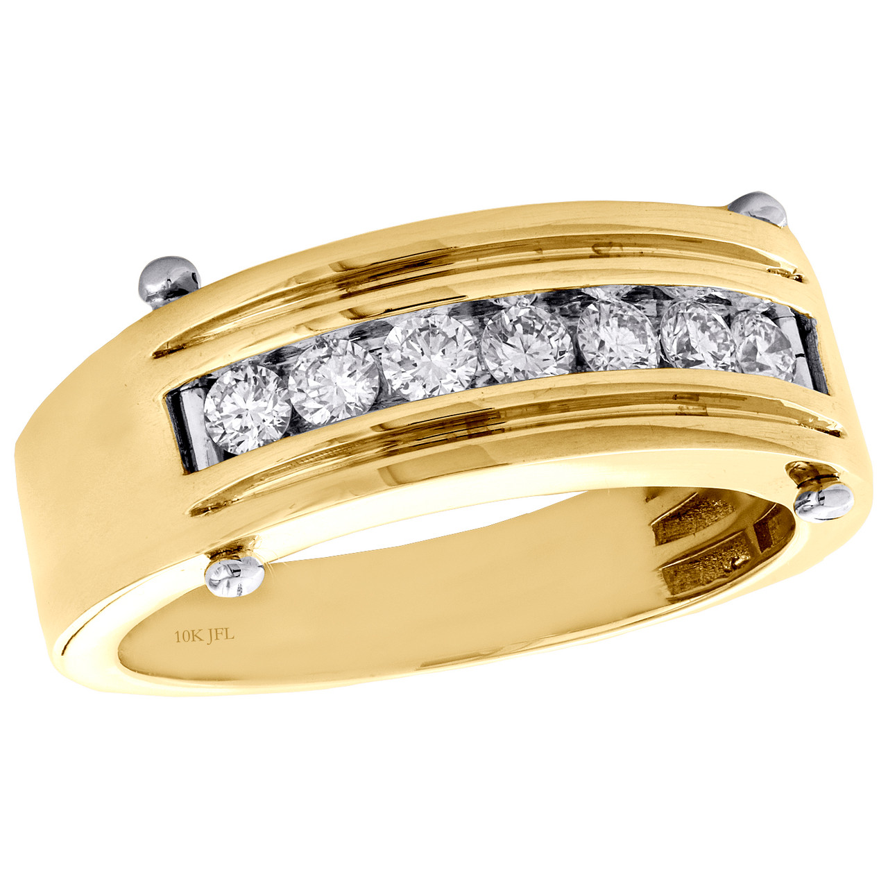 - 10K Yellow Gold Diamond Wedding Band Mens 8mm Channel Set 7 Stone Ring 0.52 CT.