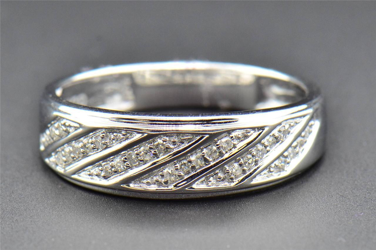 - Diamond Wedding Band 10K White Gold Round Cut Mens Designer Pave Ring 0.16 Ct