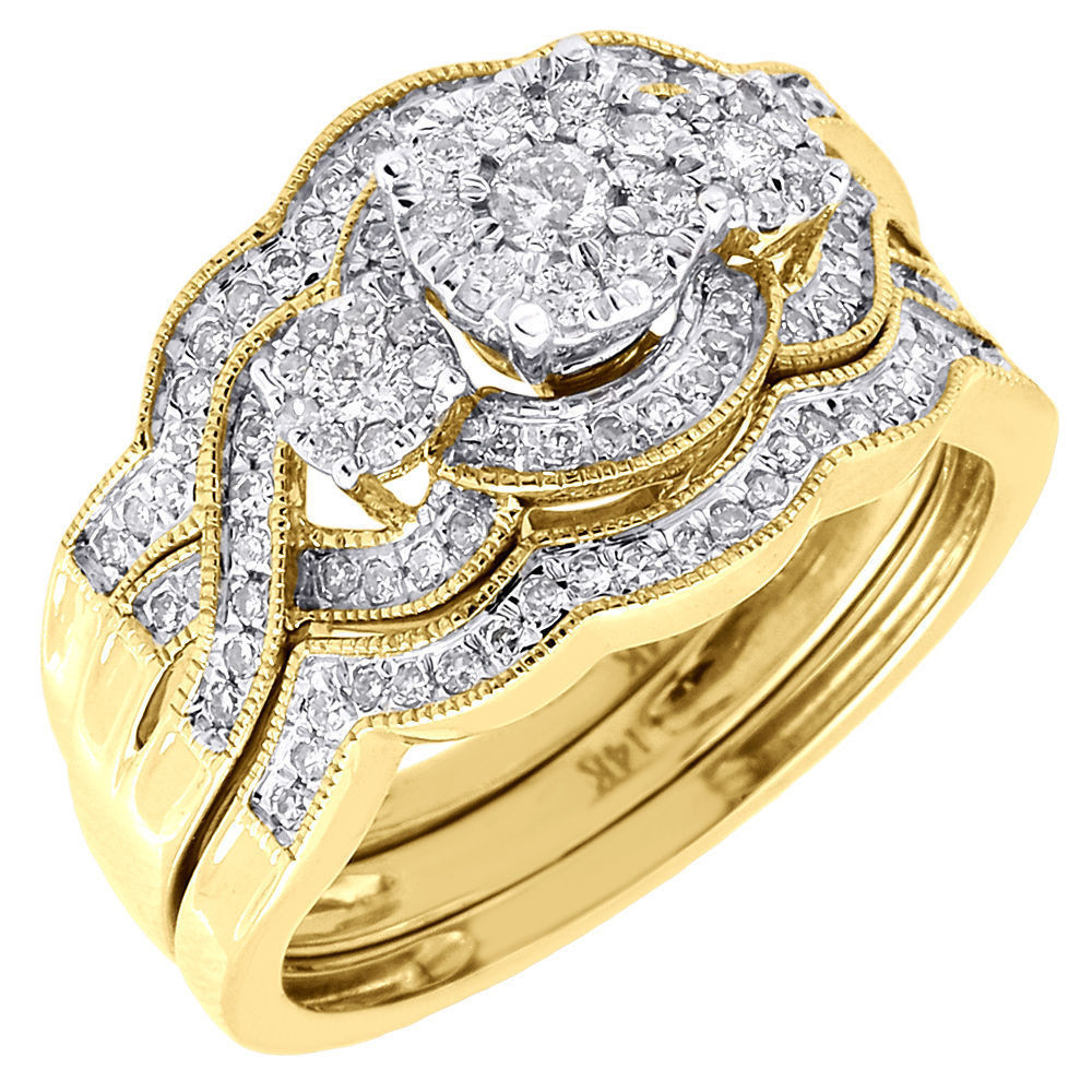- Diamond Wedding 3 Piece Bridal Set 14K Yellow Gold Round Engagement Ring 1/2 Ct.