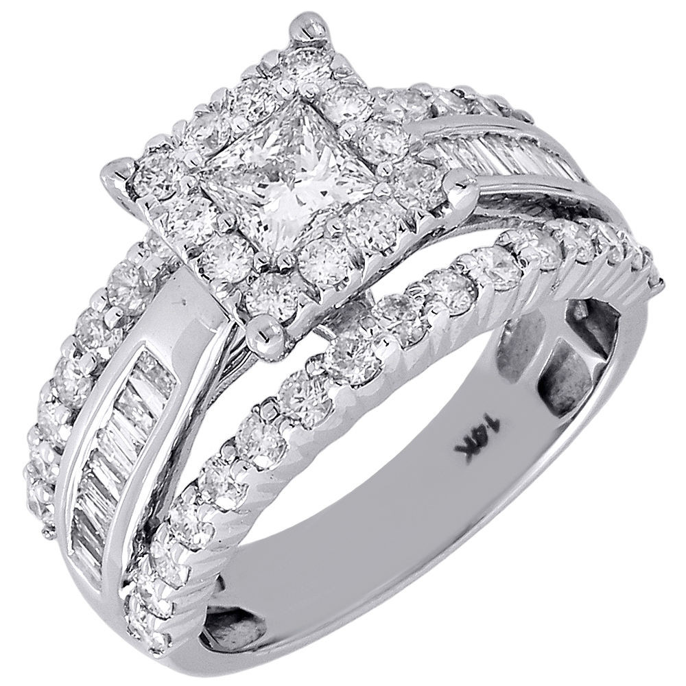 - Diamond Wedding Engagement Ring Ladies 14K White Gold Solitaire Princess 1.99 Ct