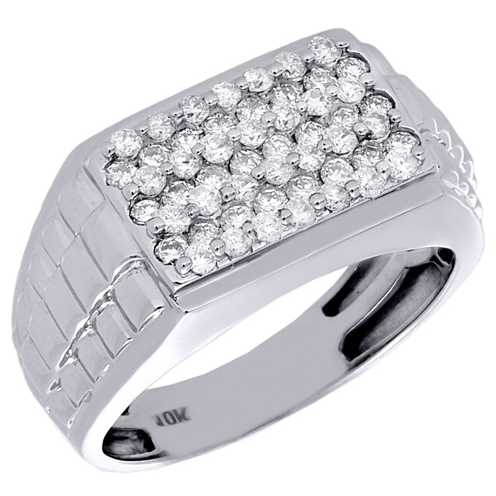 - 10K White Gold Round Cut Diamond Wedding Band Mens Fashion Pinky Ring 0.96 Ct.