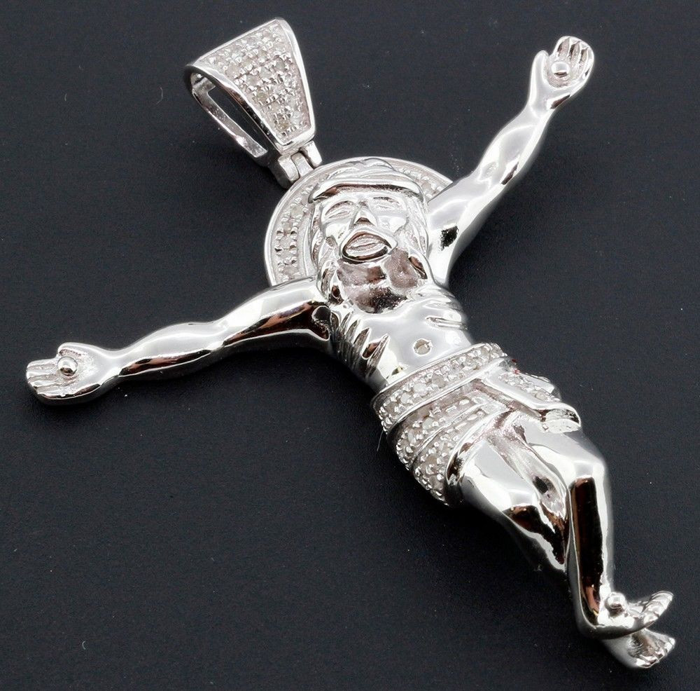 - Genuine Diamond Jesus Body Pendant Cross .925 Sterling Silver Charm 0.33 Ct.