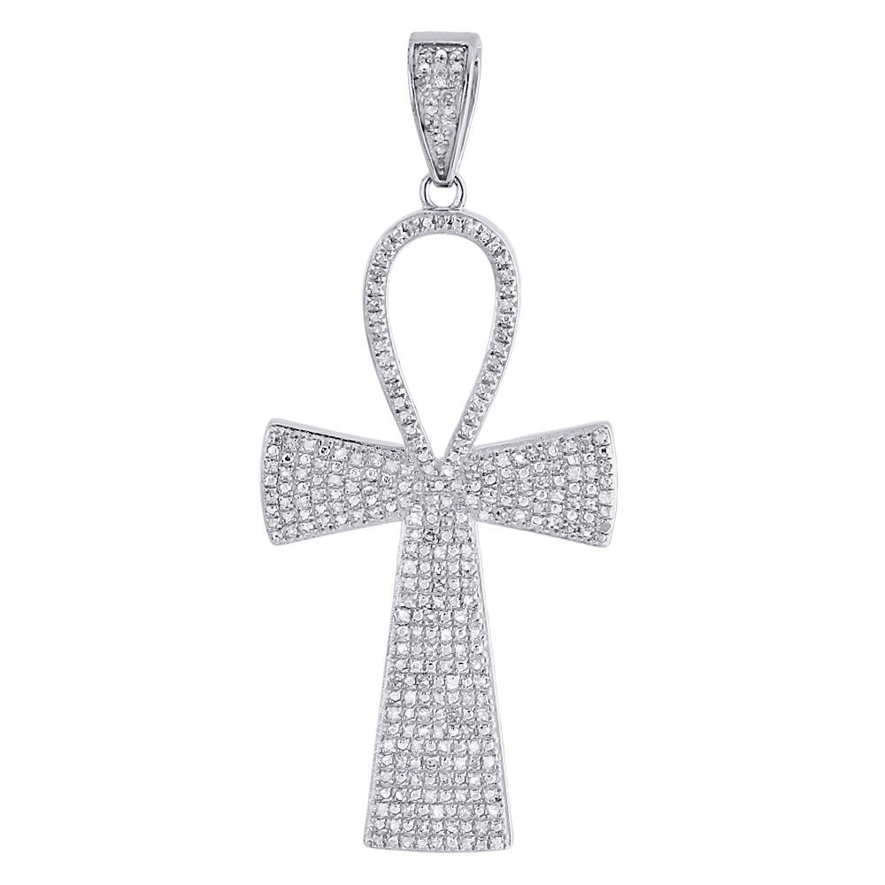 - Diamond Ankh Cross Pendant 925 Sterling Silver 3/4 Ct Medium Egyptian Pave Charm