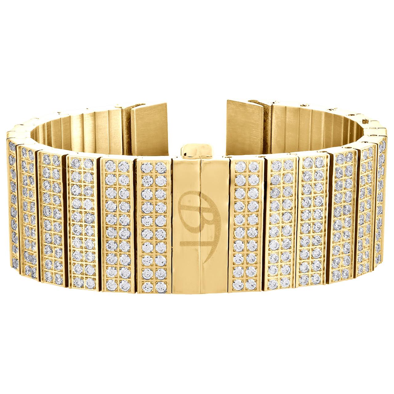- 10 Rows Cubic Zirconia CZ Watch Band Fits Only 24mm Lugs Yellow Steel Joe Rodeo