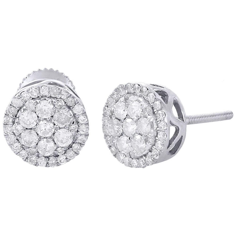 10K White Gold Round Diamond Earrings Flower Cluster Prong Set Halo Stud 1 Ct.