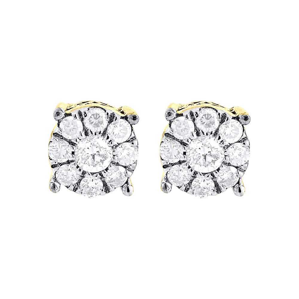 - Diamond Earrings Mens 10K Yellow Gold Round Cut Pave Circle Studs 1.25 Tcw.