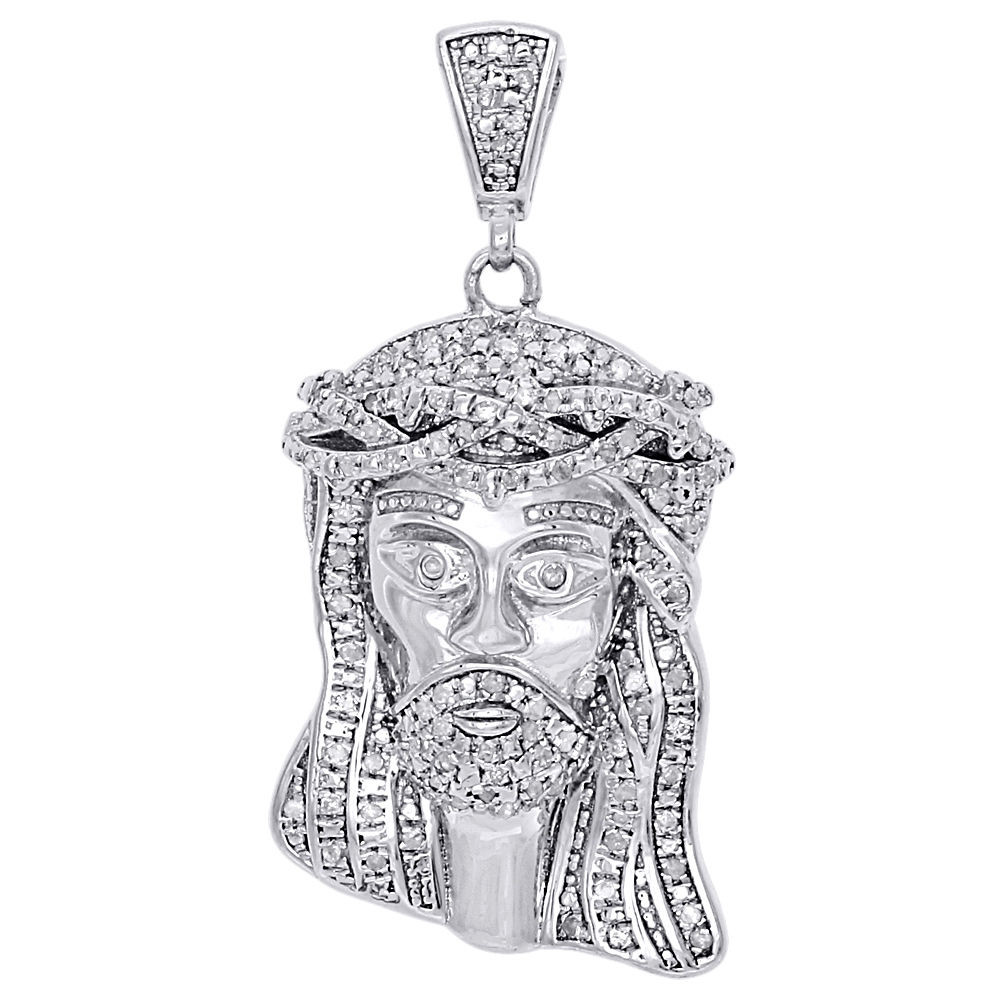 - .925 Sterling Silver Mens Real Diamond Mini Micro Jesus Face Pendant Charm 1.40".