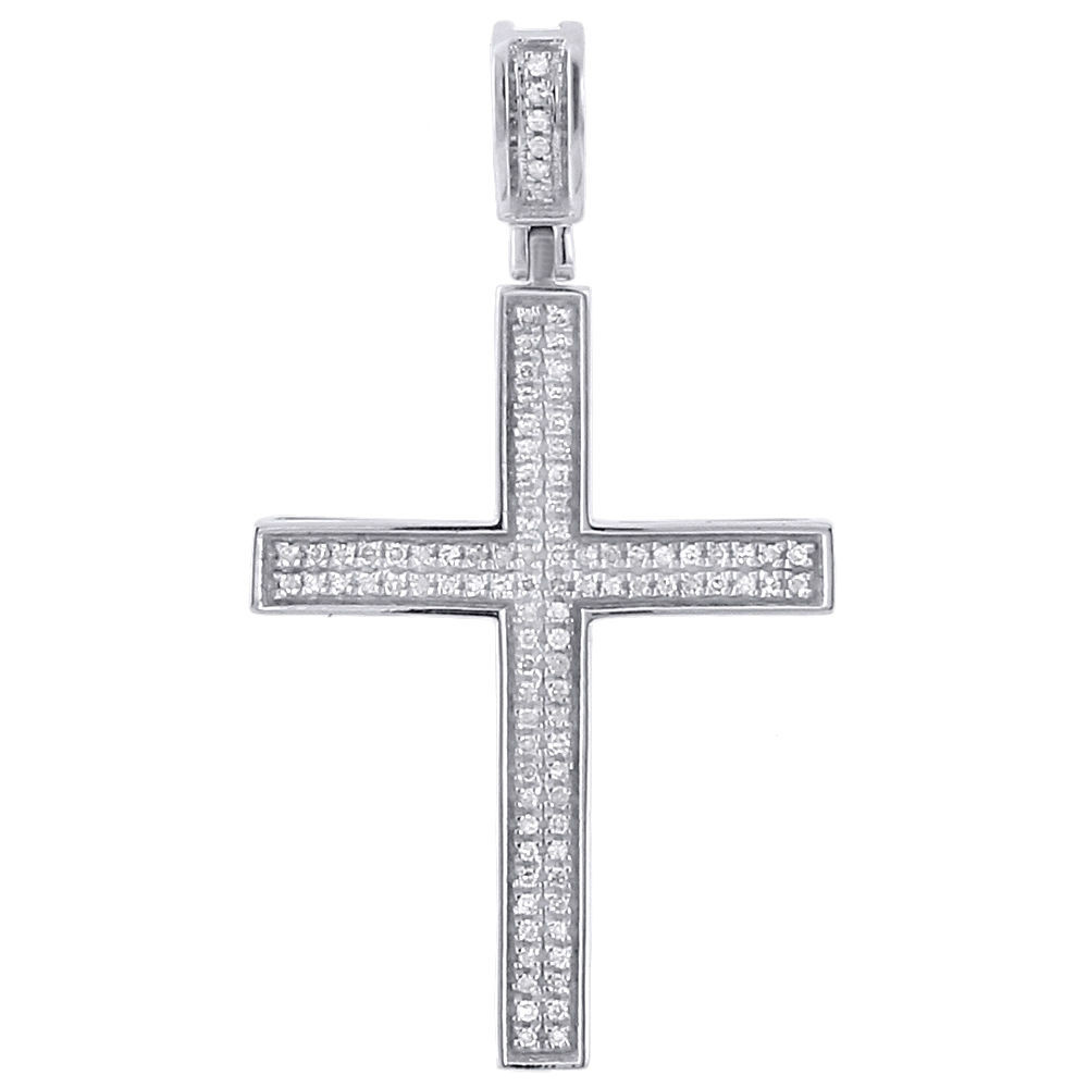 - 10K White Gold Diamond Mini Cross Pendant 0.33 Ct. Pave Set Concave Charm 1.62"
