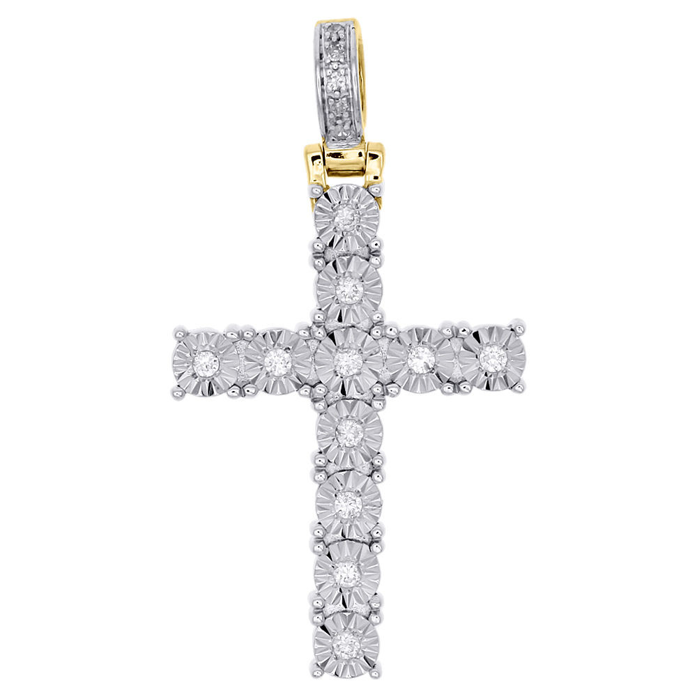 (2.9 gr. 10k Yellow Gold | 0.20 ct. t.w. of White Diamonds | Length: 1.30" (including bale) | Width: 0.75" | Clarity: I1 - I2 | Color: H - I | Unisex Genuine Diamond Cross Pendant Prong / Bezel Set Charm)