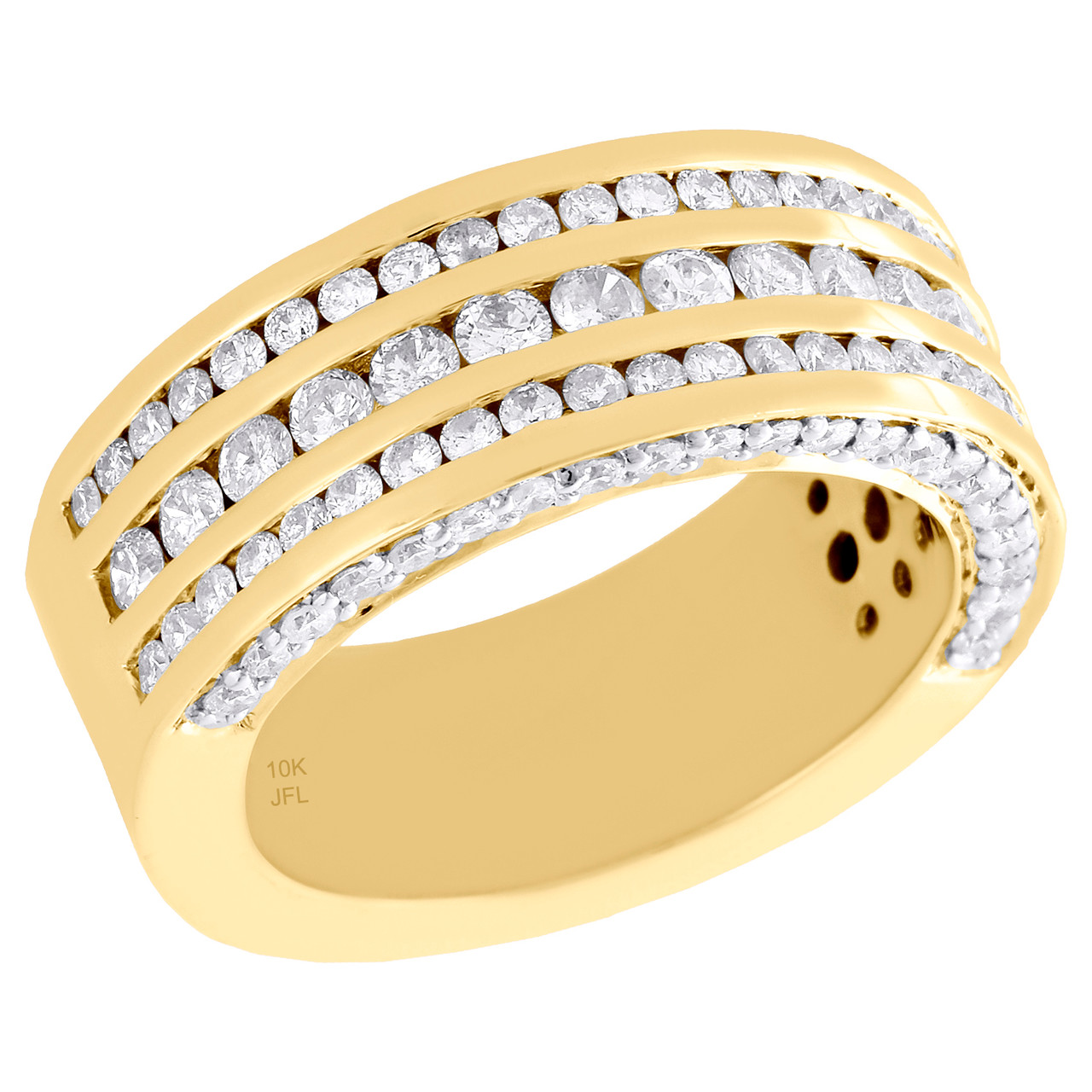 - 10K Yellow Gold Diamond Channel Set 3 Row Wedding Band 10mm Pinky Ring 3.50 CT.