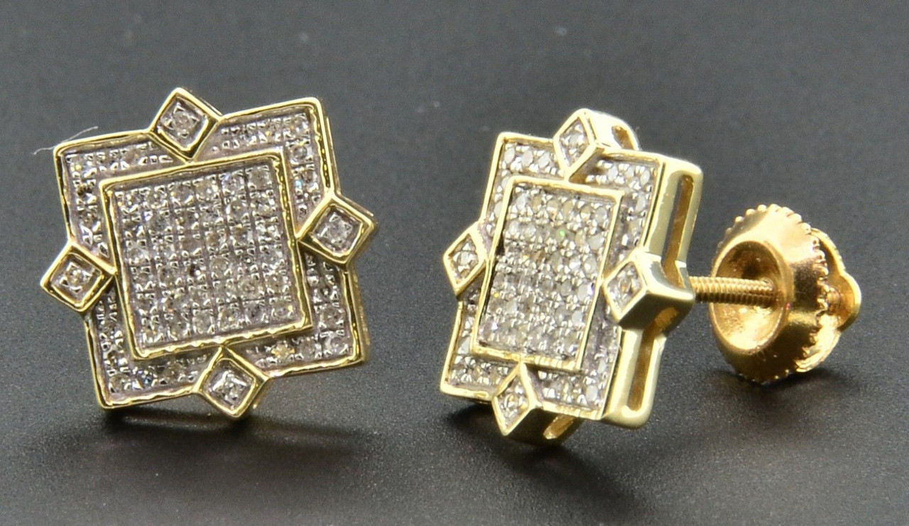 - Diamond Studs Square Shape 4 Point Mens Ladies 10K Yellow Gold Earrings 0.30 Ct.