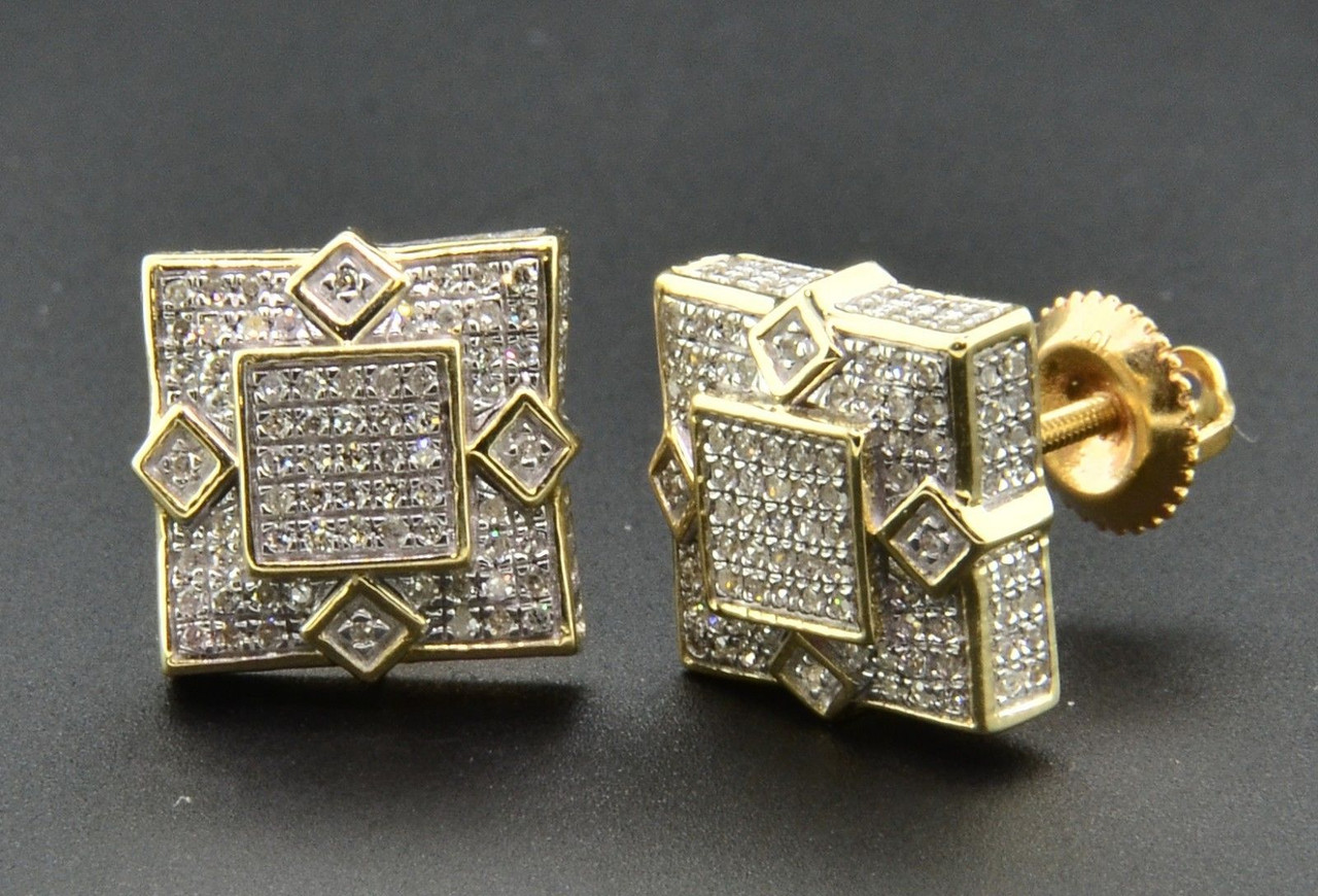 - Genuine Diamond Studs 3D Square Shape Unisex 10K Yellow Gold Earrings 0.55 Ct.