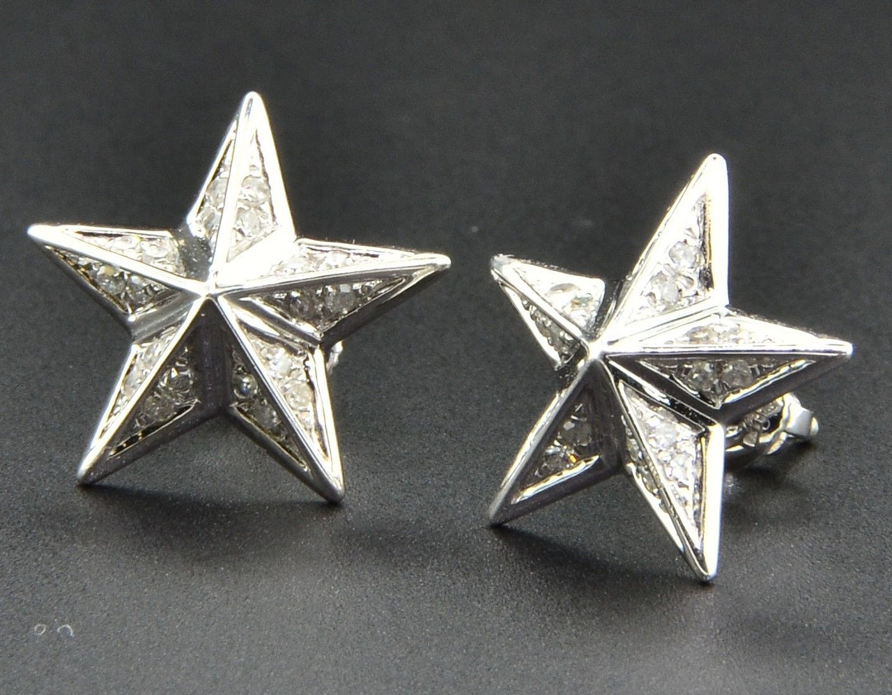 - Star Shaped Diamond Studs 10K White Gold 0.40 Ct. Round Cut Pave Earrings