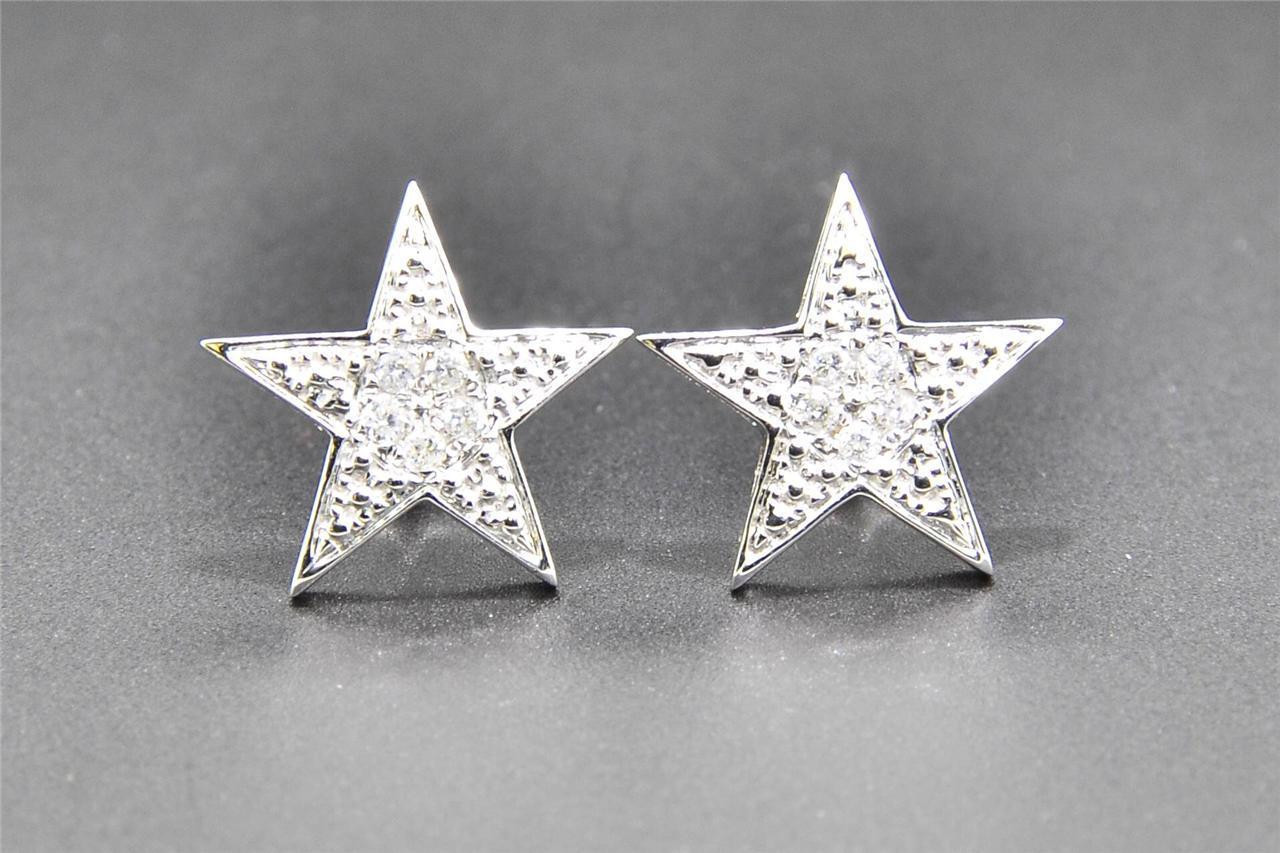 - Diamond Star Studs 10K White Gold Uni-Sex Round Cut Pave Earrings Puffed 0.14 CT