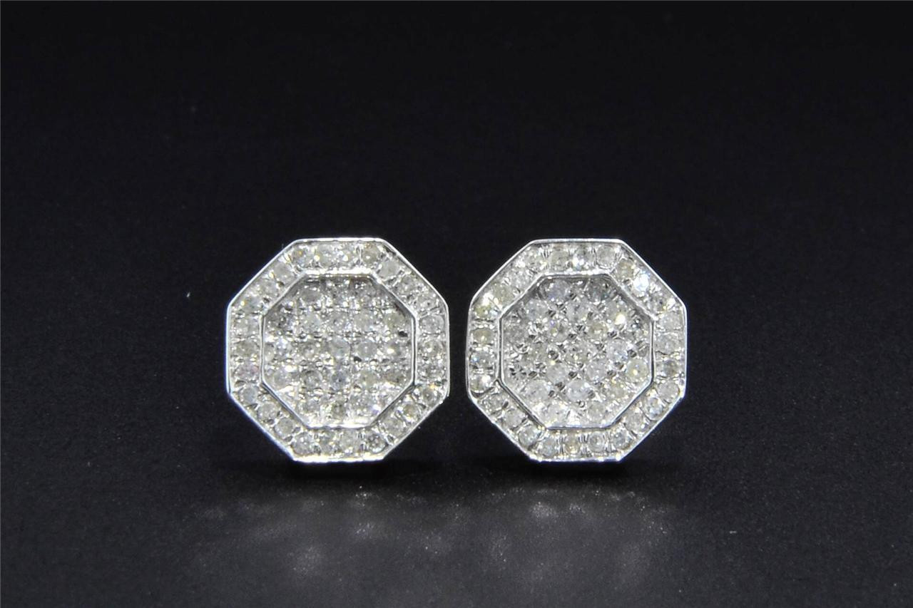 - Diamond Studs 10K White Gold Round Cut 0.38 Ct Octagon Shape Earrings