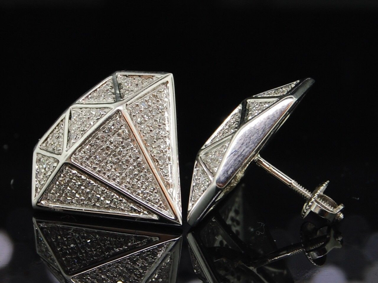 - Diamond Earrings 10K White Gold Round Pave Designer Studs 0.70 Tcw.