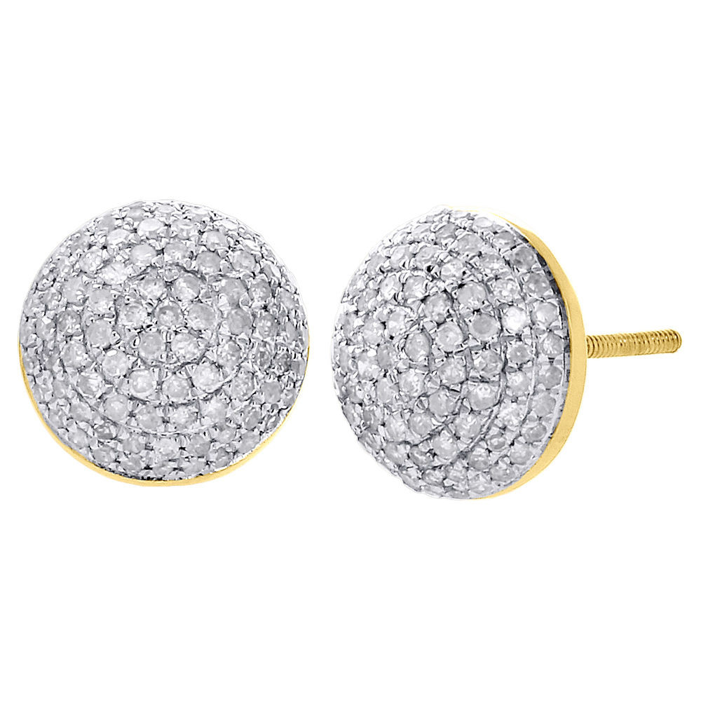 (1.9 grams of 10K Yellow Gold | 0.70 total carats of white diamonds | 10mm wide | Clarity - I1 - I2 | Color - H - I | Mens or Ladies Circle shaped domed Diamond Stud Earrings)