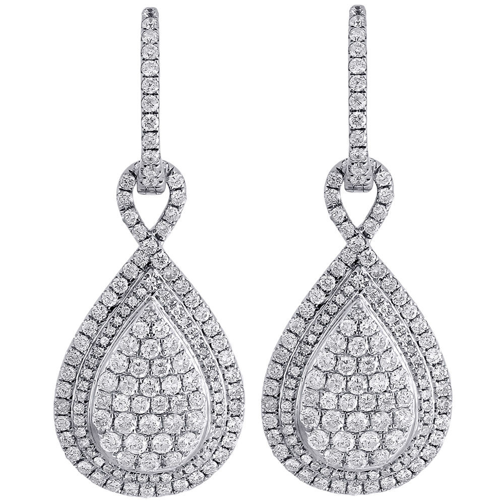 - 14K White Gold Teardrop Diamond Dangle Drop Earrings Round Cut Pave 2.33 Ctw.