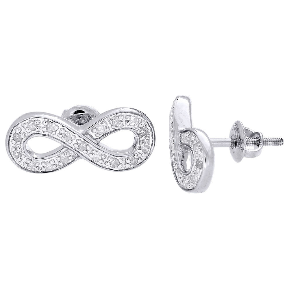 - Infinity Earrings Diamond Studs Ladies 10K White Gold Round Cut Pave 0.20 Ct.