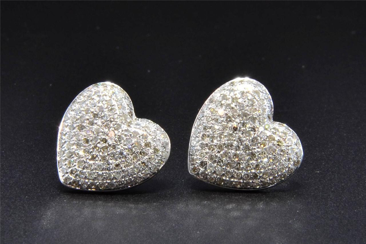 These earrings are part of our new diamond collection line. Unique and modern, these round cut diamond studs are set in 10K White Gold. The diamonds are set in a prong setting to give these earrings an overall radiance making them adequate for any occasion. The heart design symbolizes romance and love. These studs are 12.67mm wide & 12.25mm long. These studs are 4.15mm thick. (how far the earrings stick outwards)